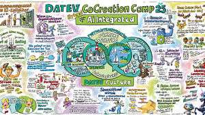 Dieses Jahr führten wir erstmals DigiCamps zu Fokusthemen durch, um strategische Schwerpunkte im Unternehmen hervorzuheben. Davon gab es zwei: Im Juli lag der Schwerpunkt auf dem Kundenservice – einem Erfolgsfaktor für Zufriedenheit, Bindung und Vertrauen unserer Mitglieder. Im Oktober folgte das Thema Ökosystem und Partnering, also Vernetzung und Kooperation im digitalen DATEV-Umfeld. Begleitet wurden die beiden DigiCamps wie immer von Learning Circle Experiences.